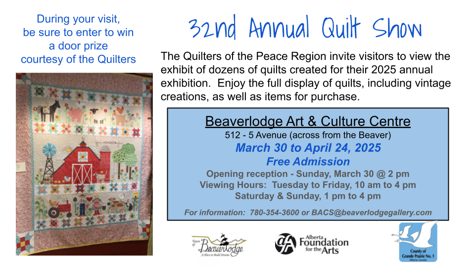 We are thrilled to showcase the Peace Country’s talented quilters again this year in a whole-building exhibit.