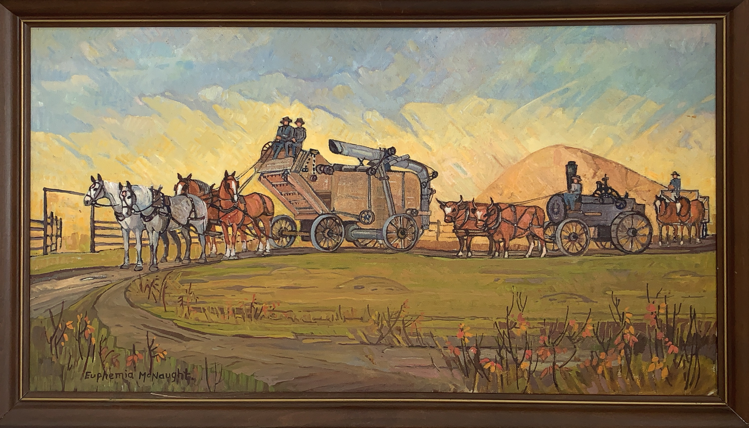 EM-002 Threshing Crew Posted on November 13, 2019November 13, 2019 by Lane Euphemia McNaught Threshing Crew Catalog No.EM-002 Date: nd Category Painting Medium Oil on canvas board Dimensions: 26h x 44w in. Credit Line: Private Collection Markings: Notes: