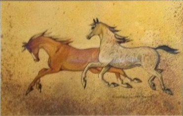 EM-017 Two Running Horses Posted on November 13, 2019November 13, 2019 by Lane Euphemia McNaught Two Running Horses Catalog No.EM-017 Date: 1976 Category Painting Medium Oil on Simulated Canvas Dimensions: 14.5h x 20w in. Credit Line: Private Collection Markings: Notes: Cataloguing only?