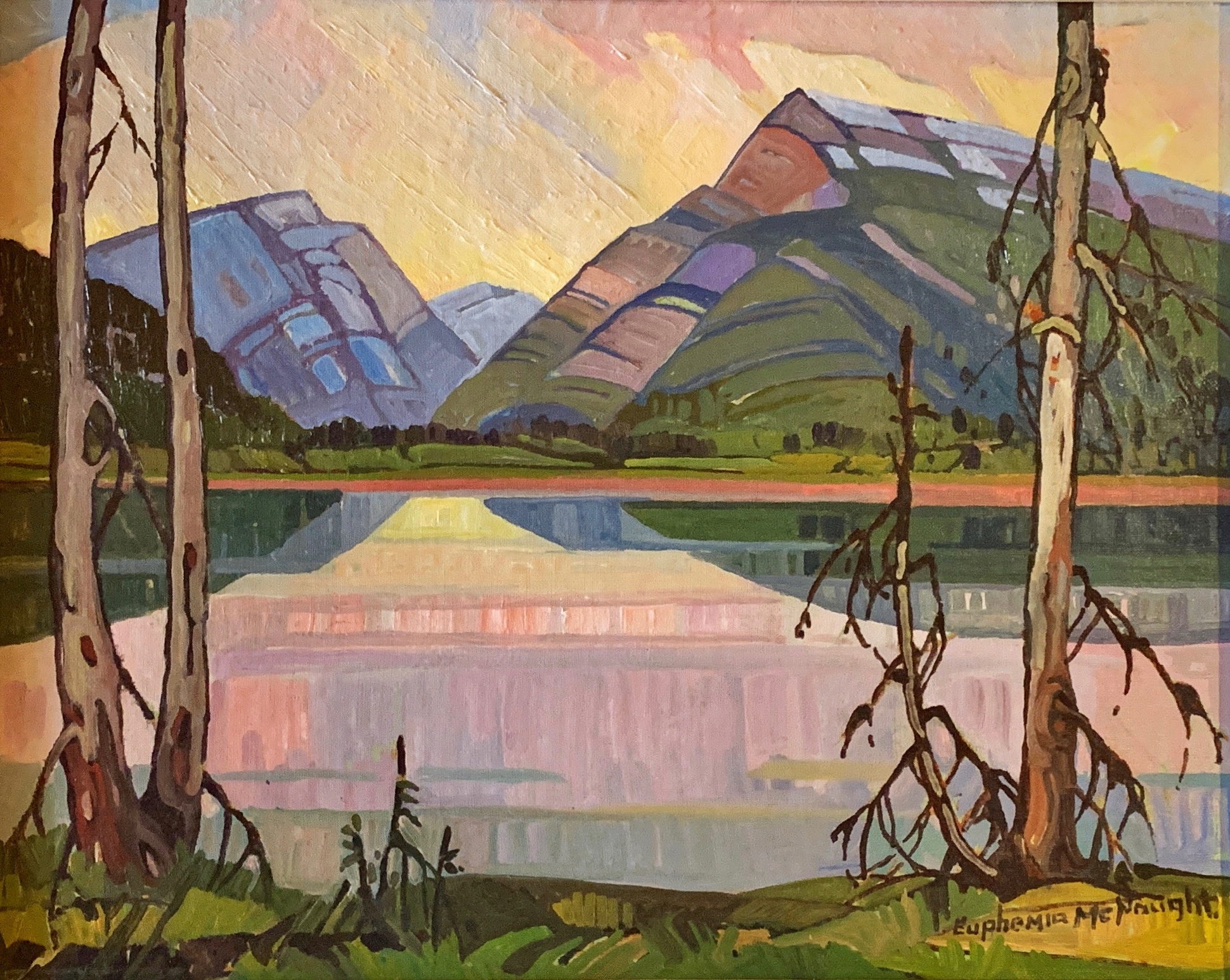 EM-059 Monkman Lake Posted on November 13, 2019November 13, 2019 by Lane Euphemia McNaught Monkman Lake Catalog No.EM-059 Date: nd Category Painting Medium Oil on canvas board Dimensions: 20.5h x 24.5w in. Credit Line: Private Collection Markings: Notes: