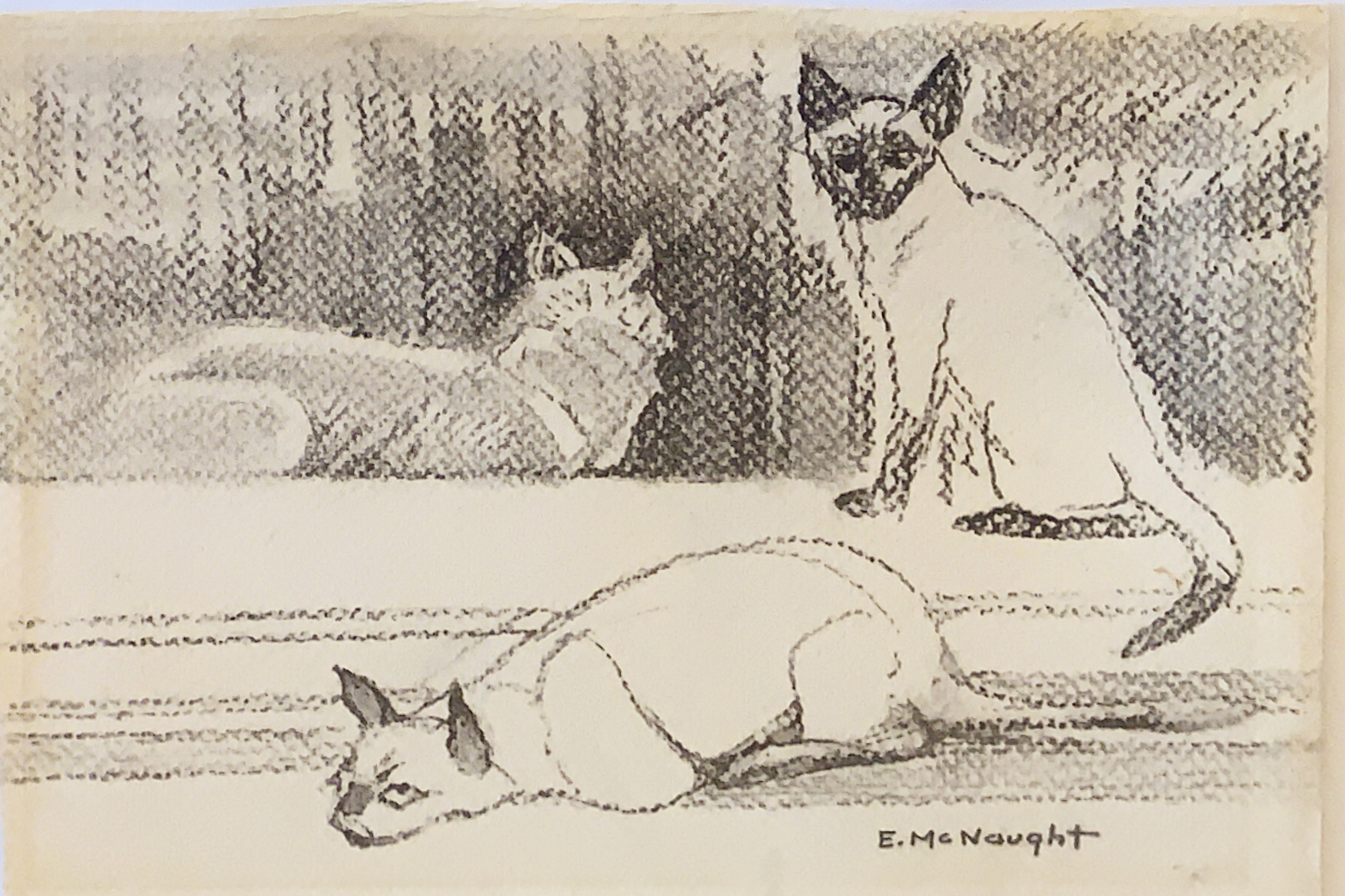 EM-078 Our Cats Posted on November 13, 2019November 13, 2019 by Lane Euphemia McNaught Our Cats Catalog No.EM-078 Date: 1982 Category Drawing Medium Charcoal & Wax Crayon Dimensions: 17.5h x 15w in. Credit Line: Private Collection Markings: Notes: