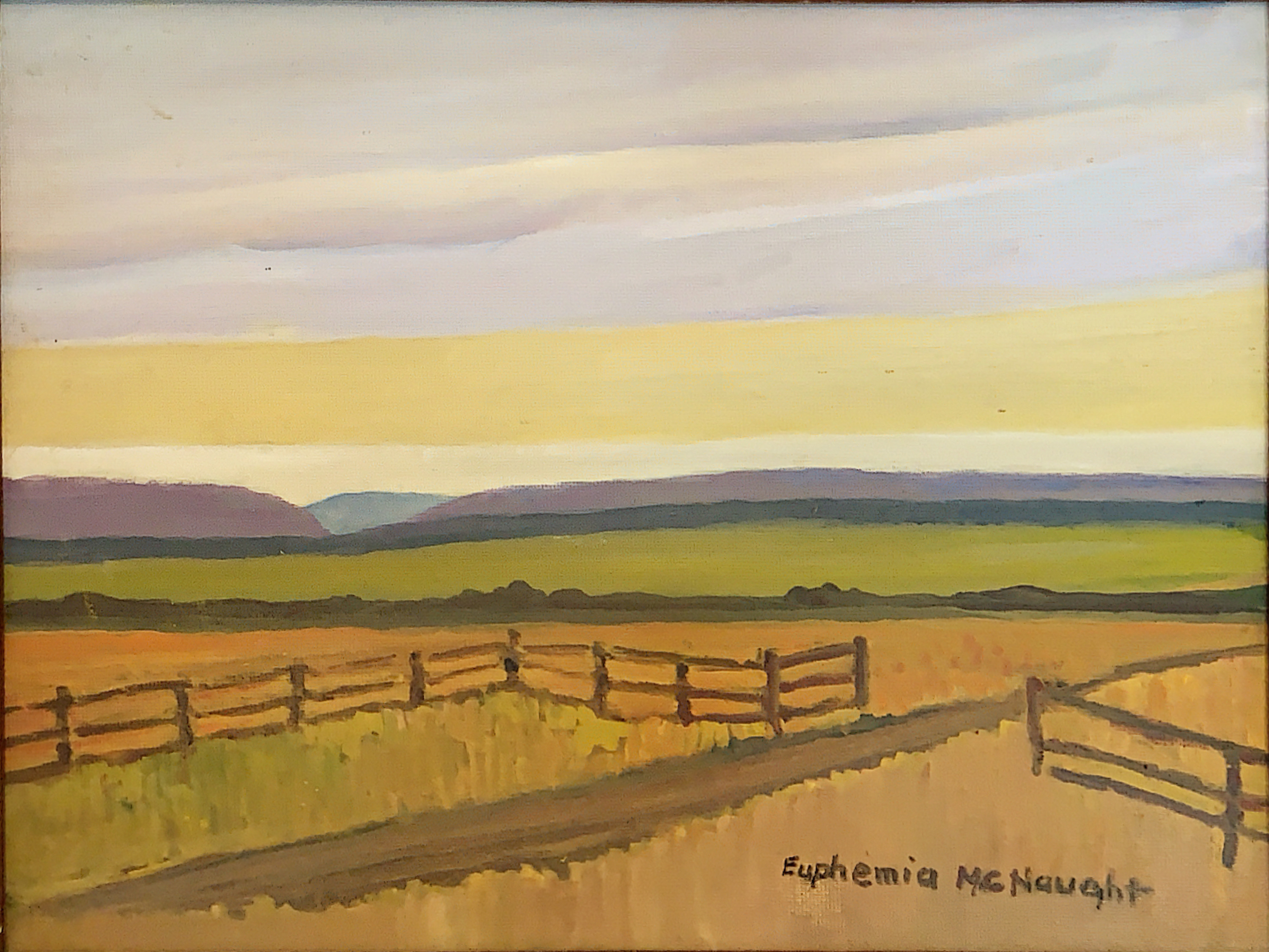 EM-154 Fence, Mountains, Sky Posted on November 13, 2019November 13, 2019 by Lane Euphemia McNaught Fence, Mountains, Sky Catalog No.EM-154 Date: nd Category Painting Medium Oil on canvas board? Dimensions: 12h x 15w in. Credit Line: Private Collection Markings: Notes: