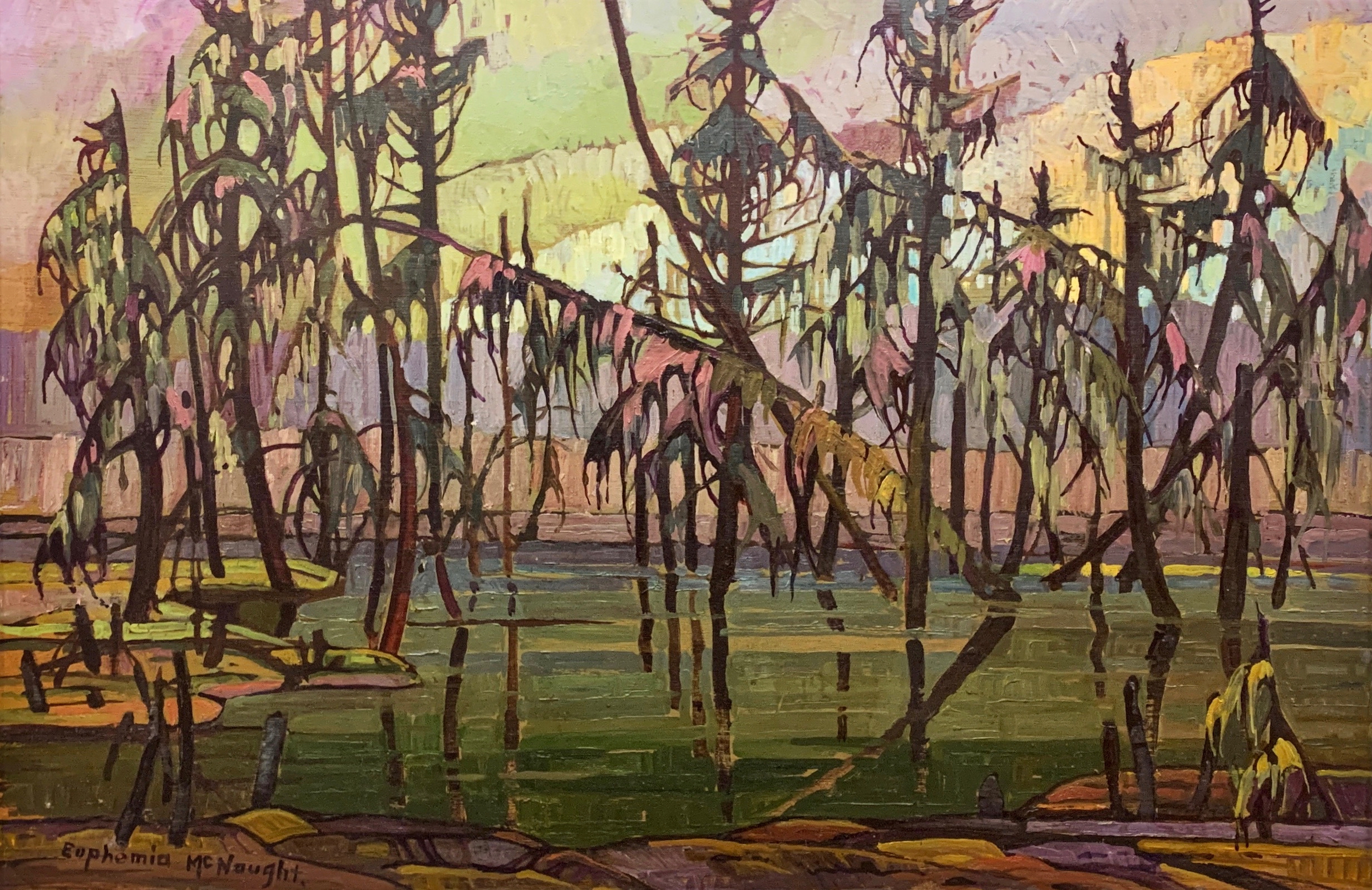 EM-163 Muskeg Along Kinuseo River Posted on November 13, 2019November 13, 2019 by Lane Euphemia McNaught Muskeg Along Kinuseo River Catalog No.EM-163 Date: 1970 Category Painting Medium Oil on canvas board Dimensions: 24h x 36w in. Credit Line: Private Collection Markings: Notes: