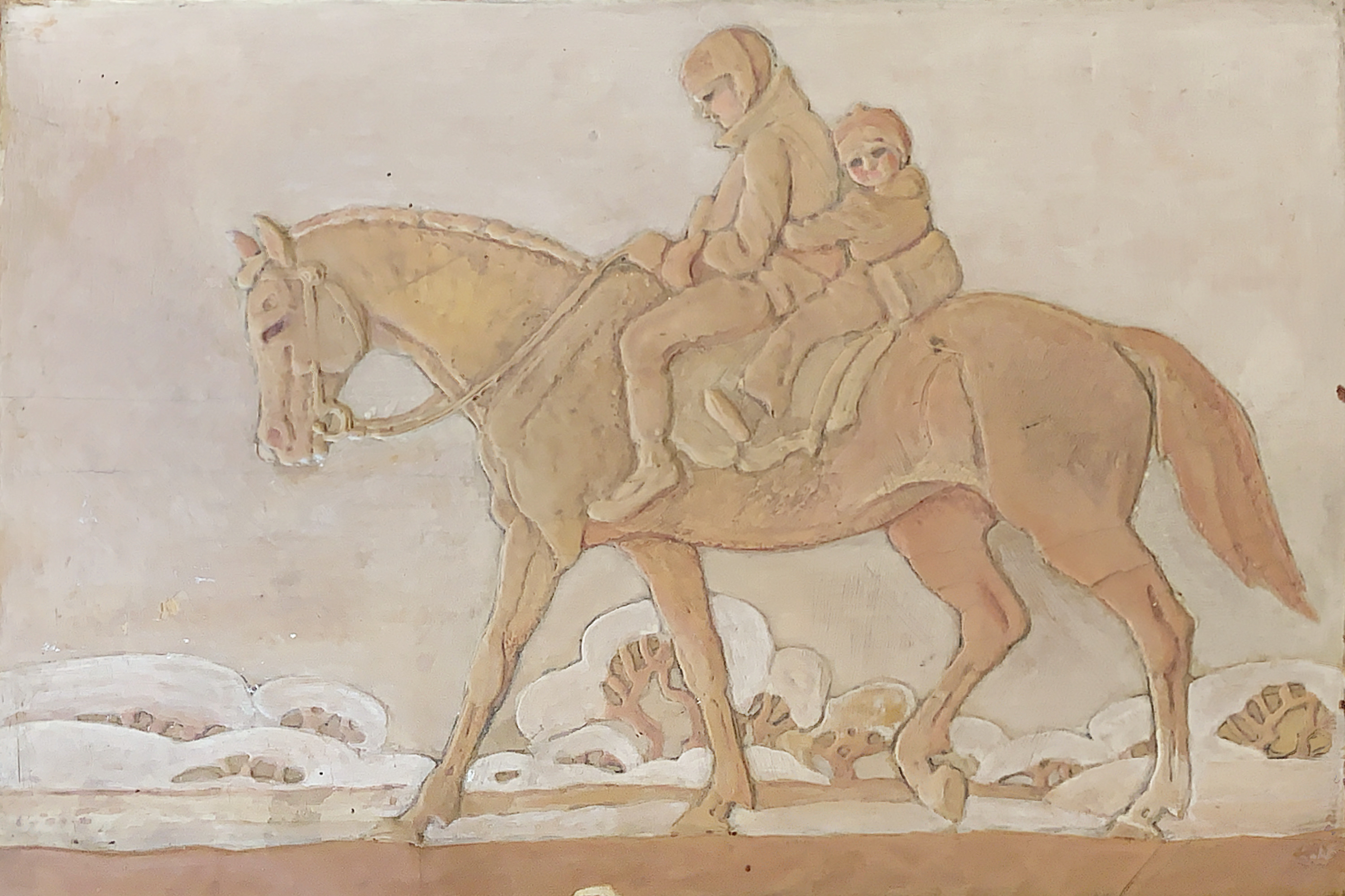 EM-224 Horse with Two Girls Riding Posted on November 13, 2019November 13, 2019 by Lane Euphemia McNaught Horse with Two Girls Riding Catalog No.EM-224 Date: nd Category Painting Medium Plaster on Wood Dimensions: 8.5h x 12w in. Credit Line: Private Collection Markings: Notes: